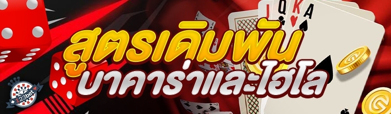 - สูตรการเริ่มต้นด้วยเกมบาคาร่า : หากผู้เล่นมีทุนประมาณ 100-300 บาท ควรเข้าเล่นเกมบาคาร่าเป็นเกมแรก เพราะเกมนี้สามารถแทงเริ่มต้นได้ที่ไม้ละ 5 บาท ผู้เล่นต้องพยายามลงตามเค้าไพ่ ไต่ไปทีละนิด จนกระทั่งยอดเครดิตไหลขึ้นไป 2 เท่าจากต้นทุน
